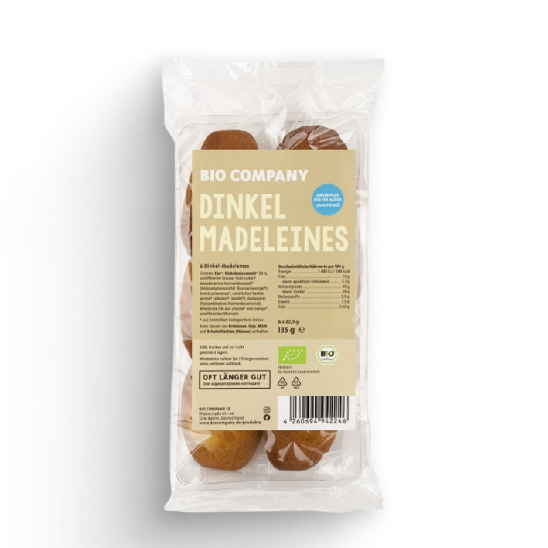 EIER*, DINKELWEIZENmehl* 28 %, unraffinierter brauner Rohrzucker*, desodoriertes Sonnenblumenöl* (Sonnenblumenöl*, Antioxidationsmittel: Rosmarinextrakt*), Invertzuckersirup*, natürliches Vanillearoma*, Backtriebmittel: Kaliumbitartrat und Natriumbicarbonat, ätherische Öle (Zitrone*, Orange*), unraffiniertes Meersalz