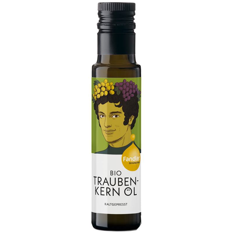 Die Fandler Öle sind nicht nur voll und natürlich in Geschmack, Duft und Farbe, sondern zeichnen sich zudem durch ihre schonende Herstellungsweise aus. Traubenkernöl wird aus winzigen Traubenkernen gepresst, diese stecken voller wertvoller Antioxidantien und haben zudem einen hohen Anteil an Linolsäure (75,6 %).