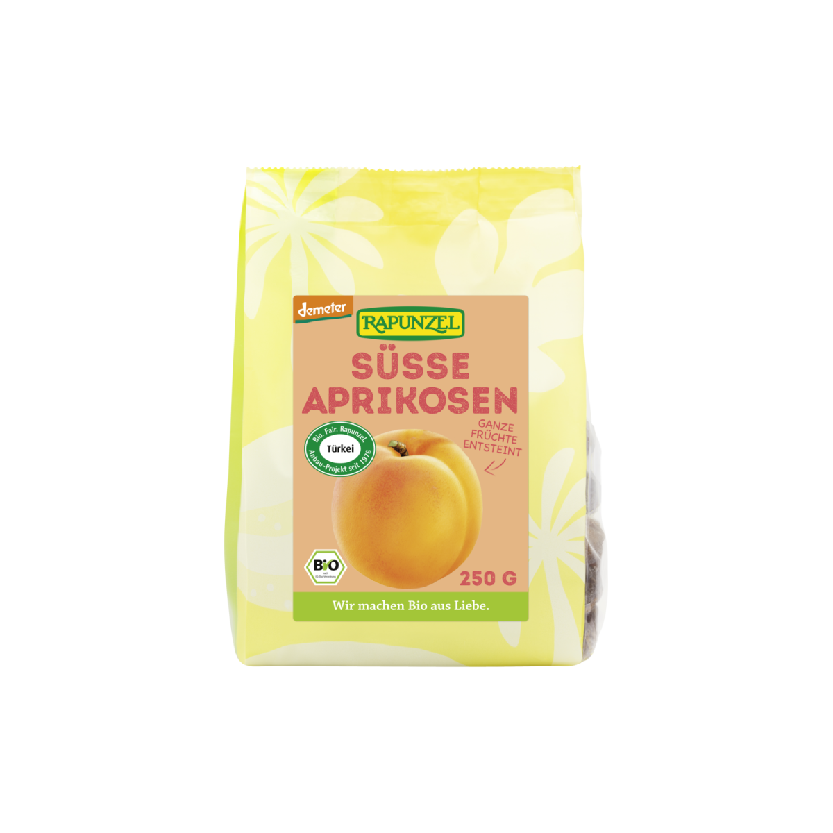 Sonnengereifte, herrlich fruchtig-süße demeter Aprikosen aus dem Rapunzel Türkei-Projekt. Die Früchte werden in der hügeligen Region Malatya in Ostanatolien kultiviert, geerntet und in der Sonne getrocknet. So erhalten die Aprikosen ihr volles Aroma. Die natürliche orange-braune Farbe der getrockneten Früchte ist ein Qualitätsmerkmal für ungeschwefelte Aprikosen.