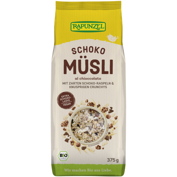 HAFERVOLLKORNFLOCKEN*(60,00%), Zartbitter-Nuss-Crunchy* (21,00%) (HAFERVOLLKORNFLOCKEN*(12,00%), Rübenzucker*, Sonnenblumenöl*, HASELNÜSSE*(1,50%), Knusper-Reis* (Reis*, GERSTENMALZ*, Meersalz), Zartbitterschokolade*(1,30%), (Kakaomasse*, Rohrzucker*, Kakaobutter*), Reissirup*, Kakaopulver*, Kokosraspel*), Zartbitterschokolade* geraspelt (13,00%) (Kakaomasse*, Vollrohrzucker*, Rohrzucker*, Kakaobutter*, Emulgator Sonnenblumenlecithin*), Amaranth* gepufft(4,00%), Leinsaat*, Bourbon Vanille*