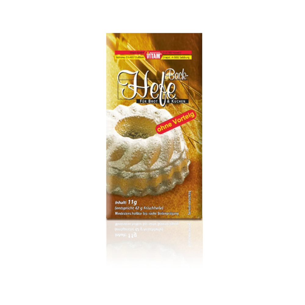 VITAM Backhefe leistet Ihnen durch ihre garantierte Triebkraft auch für schwere Teige eine wertvolle Hilfe in der Vollkornbäckerei. Sie können sie für jeden Hefeteig anstelle von Frischhefe verwenden. Ein Beutel VITAM-Hefe entspricht hierbei einem Hefewürfel von 42 g. Neben dem Vorteil monatelanger Haltbarkeit „verzeiht“ Ihnen die VITAM Instant-Hefe ohne Vorteig auch mehr als eine Frischhefe (z.B. den Kontakt mit Salz), weshalb bei leichten Teigen auf das erste Gehen im Vorteig verzichtet werden kann.