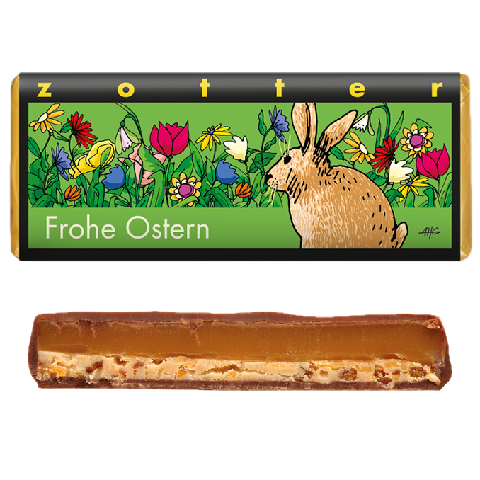 Eine süße Versuchung mit natürlichem Karamell, der mit Butter gerührt, fabelhaft gut schmeckt. Kombiniert mit einer Schicht Mandelnougat. Dazwischen tummeln sich knackige Karamell-Crispies. Umhüllt von Milchschokolade mit 50 % Kakaoanteil.